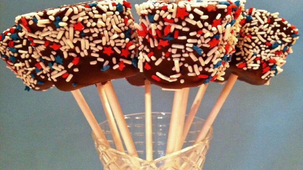 - Sumerjan los malvaviscos en los chocolates y decoren con las chispas, estrellas o pintura.