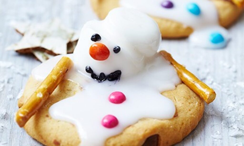 Igual que le pasa a Olaf cuando se acerca al fuego, estas galletas llevan un muñeco de nieve a punto de derretirse.