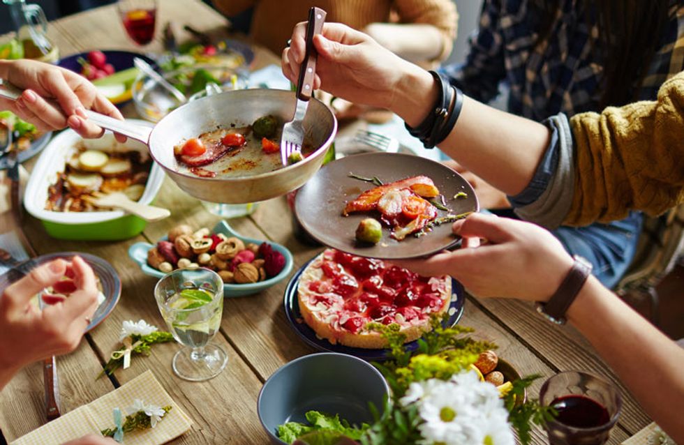 Aquí es cuando todos nos reunimos a conversar y charlar con aquellos que no vemos muy a menudo. Como se trata de un día especial, la mesa suele estar maravillosamente decorada con colores alusivos a la fecha. No puede faltar ni el más mínimo detalle: manteles, servilletas, platos y vasos.